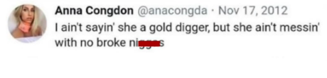 Despite being a lyric from a popular song, Congdon’s decision to publicly use a racial slur shows a blatant disregard for the harm such language causes. The casual tone of the tweet reflects a disturbing comfort with racist language, especially alarming given her current public profile.