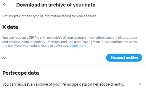- Once notified, return to the “Download an archive of your data” section and click “Download Archive”.