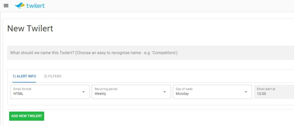 Twilert can save you a lot of manual effort. Instead of scrolling through profiles, the tool lets you set up alerts for specific keywords, hashtags, or mentions.