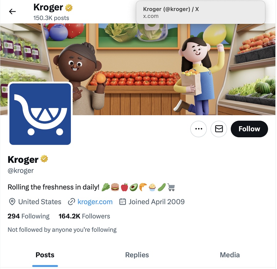 A perfect example? Check out Kroger’s account. Solid number of followers.