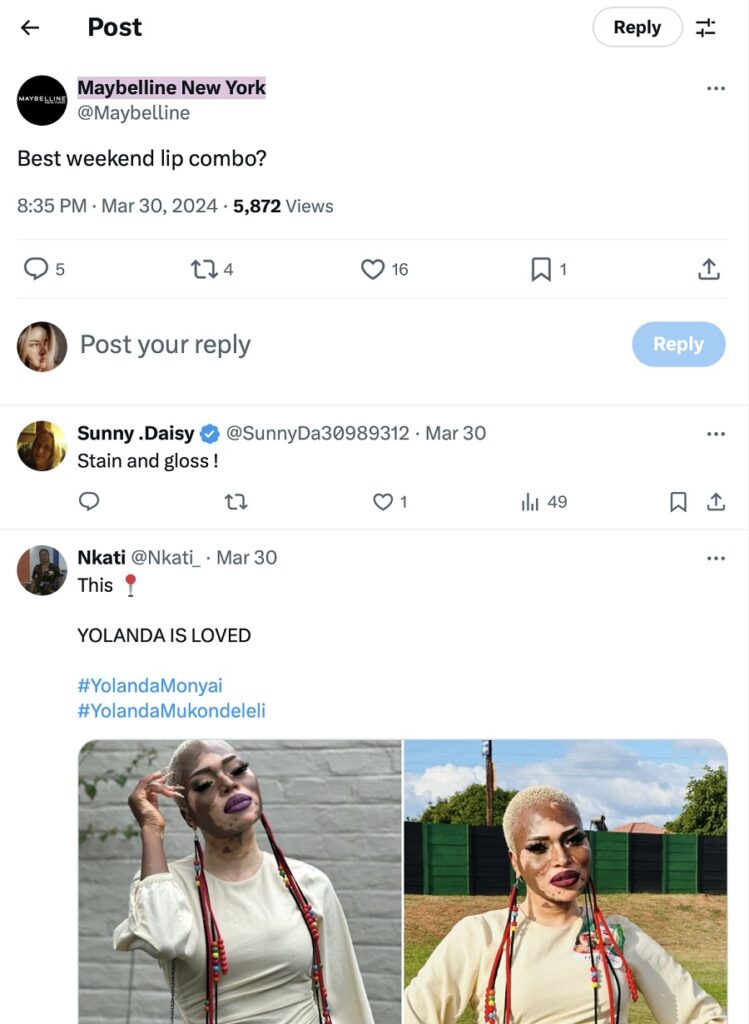 Maybelline New York decided to reach out to their audience but didn’t bother to engage further in the discussion: